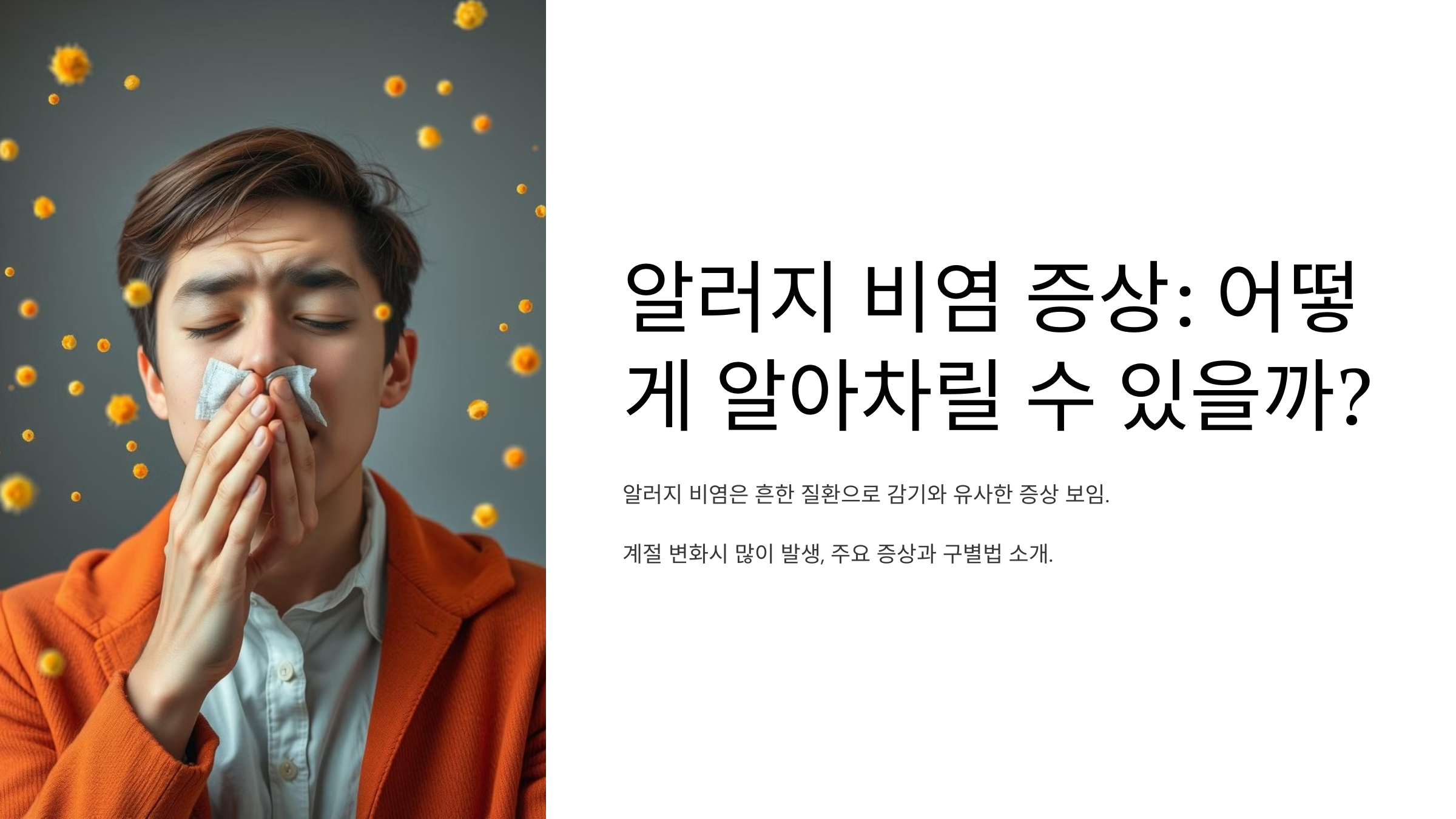알러지 비염은 많은 사람들이 경험하는 흔한 질환 중 하나로, 특히 계절이 바뀌는 환절기에 많이 발생합니다. 그러나 감기와 유사한 증상들 때문에 알러지 비염을 구분하기 어려운 경우가 많습니다. 이 글에서는 알러지 비염의 주요 증상들을 알아보고, 이를 어떻게 빠르게 알아차릴 수 있는지에 대해 알아보겠습니다. 🤧
