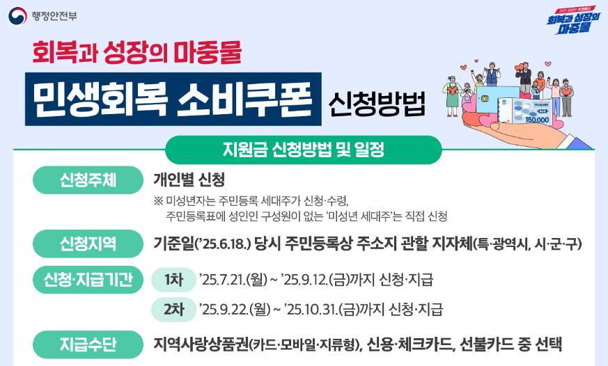 민생회복 소비쿠폰은 전국민 대상 소비 장려 정책으로, 지역 경제 활성화와 소상공인 지원을 목표로 해요. 정부가 경기 침체 완화와 국민 소득 지원을 위해 마련한 정책이죠. 신용카드, 체크카드, 선불카드, 지역사랑상품권 등으로 지급될 예정이에요.