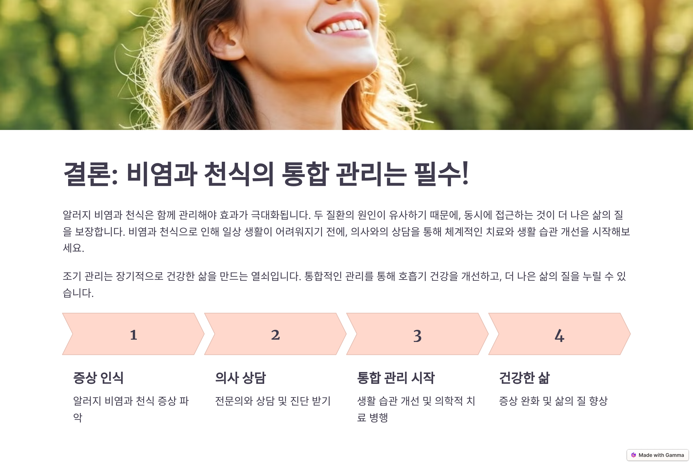 ## 💡 결론: 비염과 천식의 통합 관리는 필수!