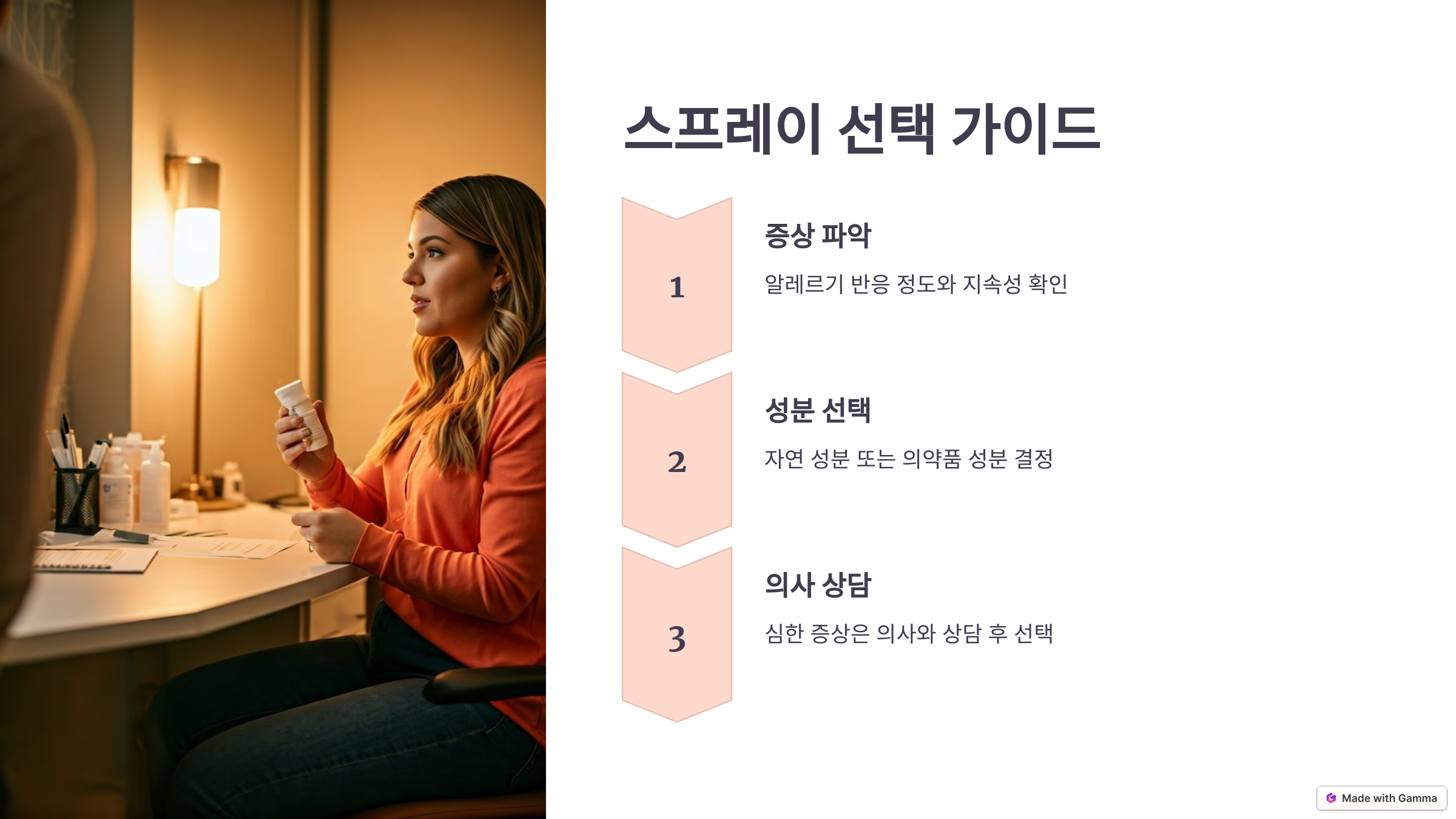 ✅ 결론: 자신의 상태에 맞는 스프레이 선택하기 🧴