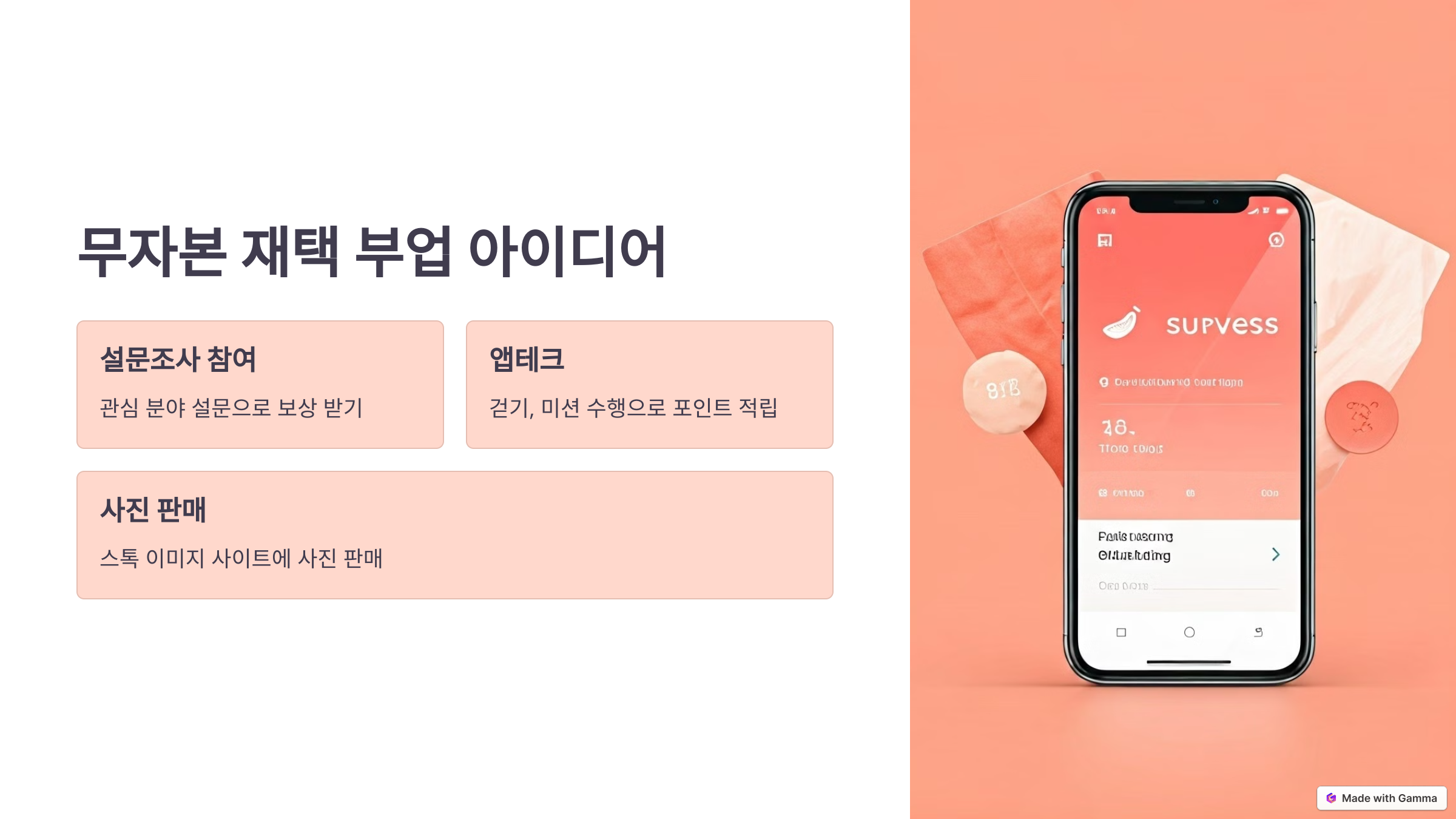 - 설문조사 참여: 설문조사 사이트에 가입하고, 자신의 관심 분야에 맞는 설문을 통해 보상을 받을 수 있습니다.