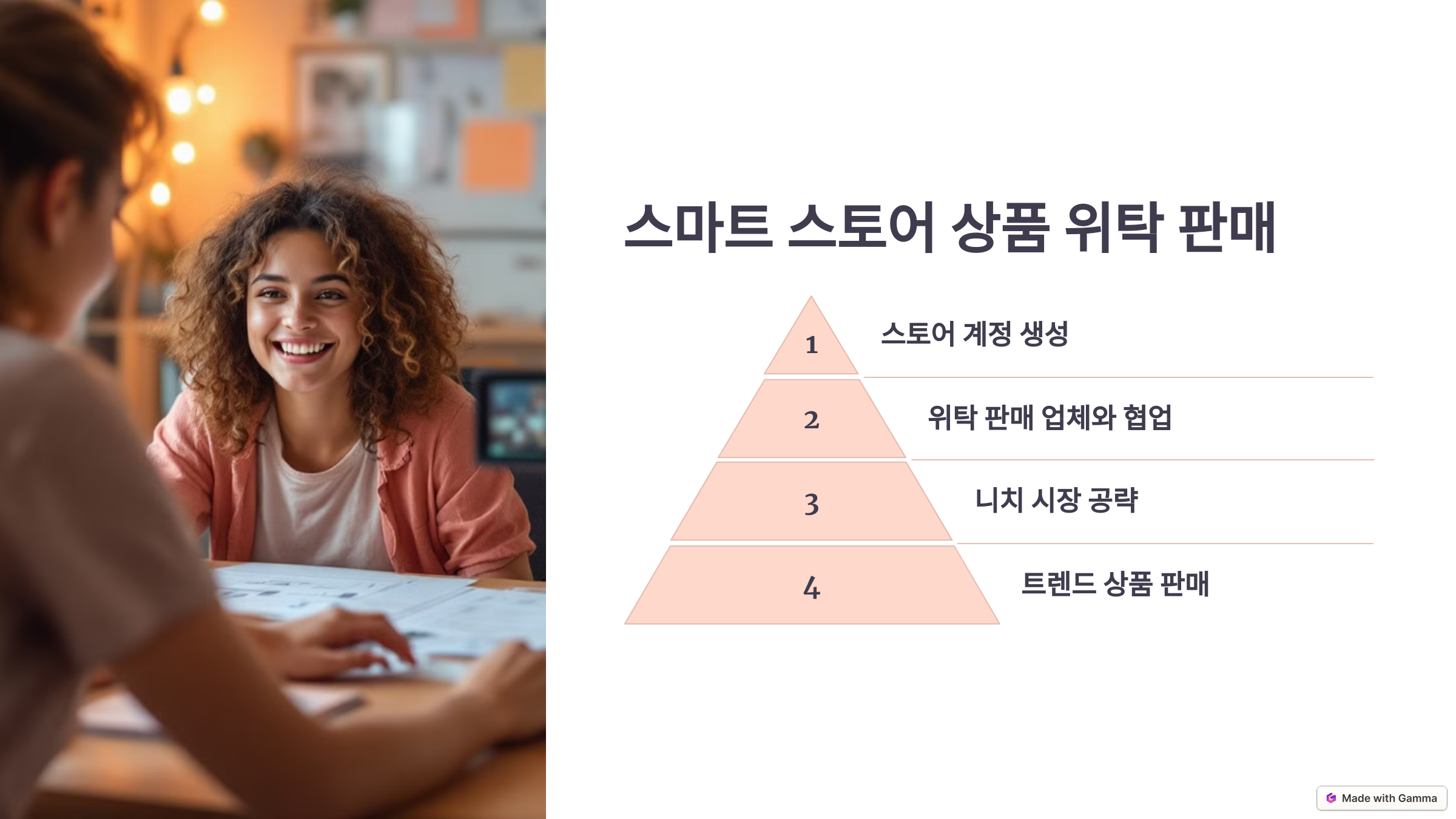 스마트 스토어를 운영하며, 위탁 판매 방식을 통해 재고를 직접 관리하지 않고도 판매를 시작할 수 있습니다.