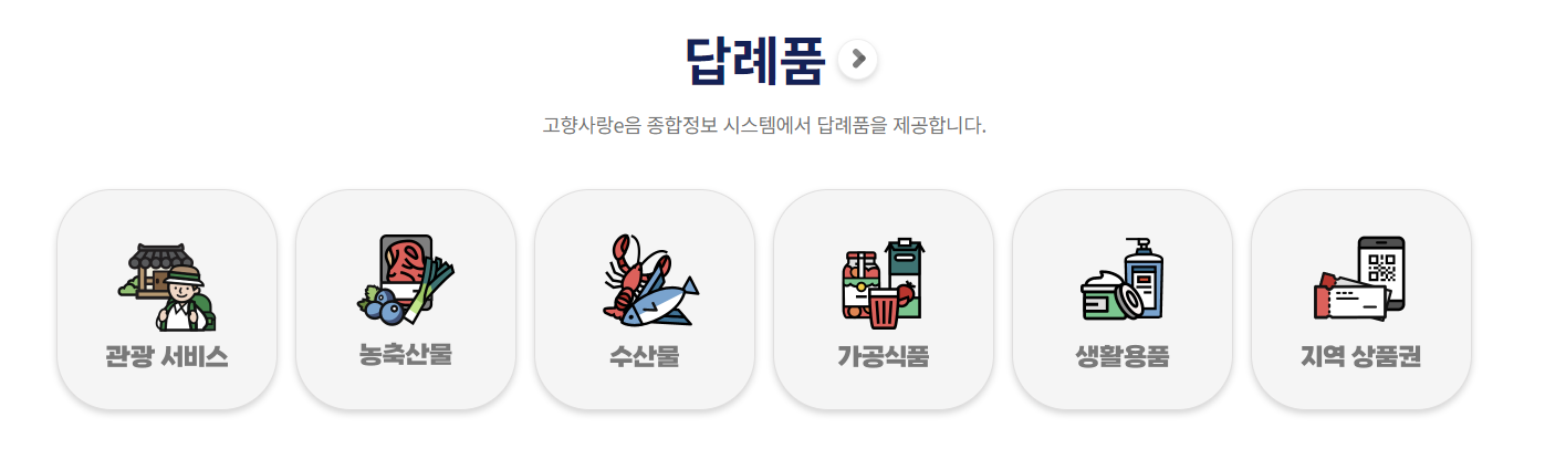 - 답례품 수령 : 제공되는 답례품을 선택하고 수령
