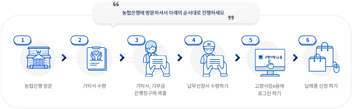 기부는 농협은행 창구에서 접수를 진행하고 있습니다.