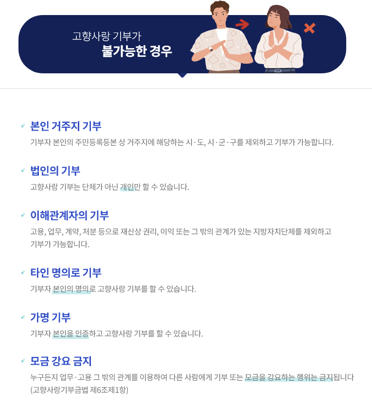- 본인이 거주하는 지역에는 기부할 수 없습니다.