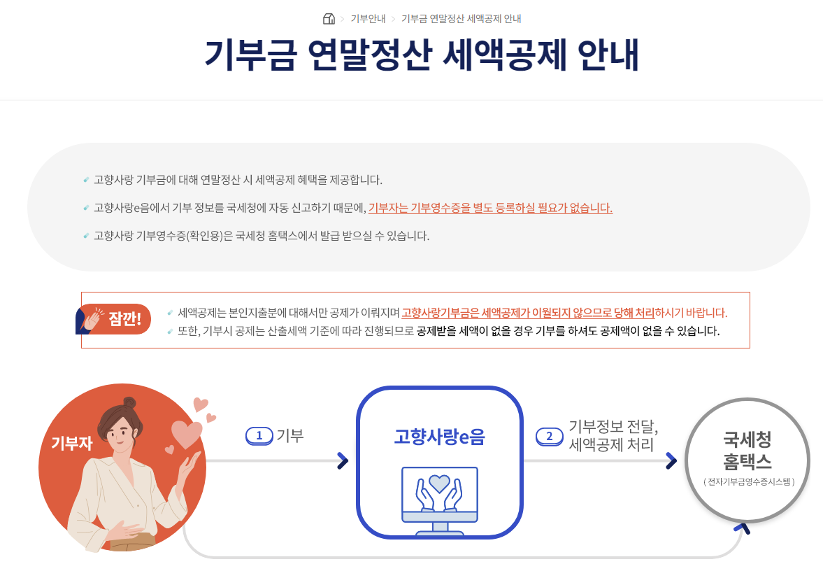 세액 공제 혜택 : 연간 최대 500만 원까지 기부 가능하며, 10만 원 이하 기부금은 전액 세액 공제됩니다.