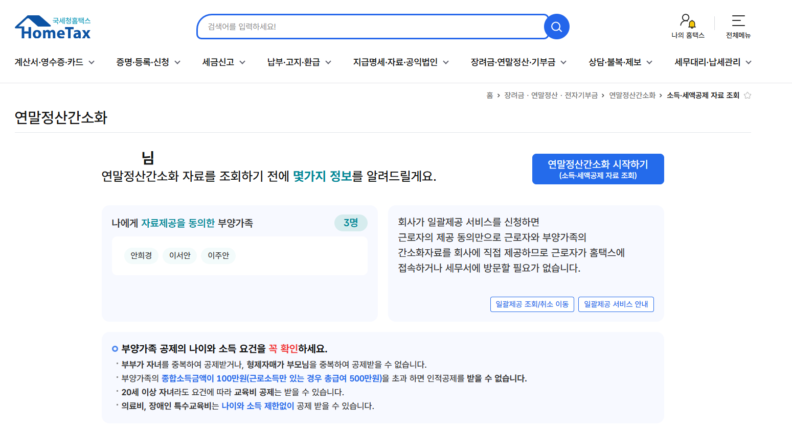 - 가족 구성원 정보 입력: 부양가족 공제를 받을 경우, 가족 정보(나이, 소득 등)를 정확히 입력해야 합니다.