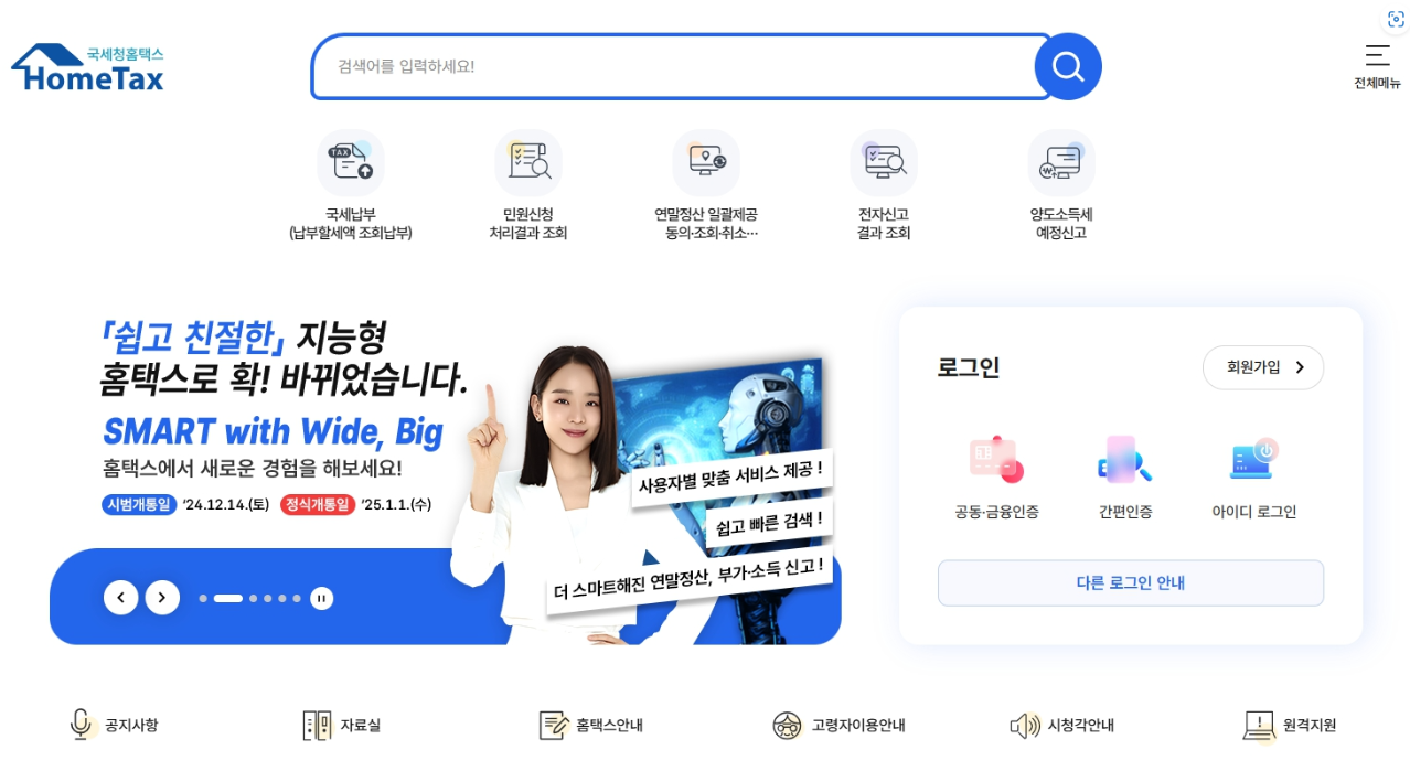 - 홈택스 웹사이트 또는 손택스(모바일 앱)에 접속 후 로그인하세요.