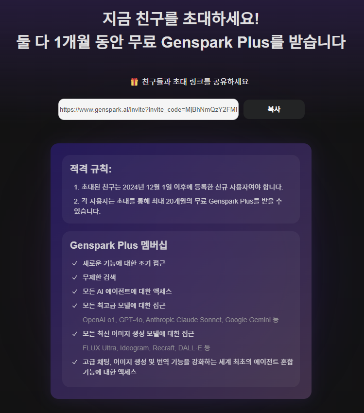 - 초대 링크를 공유하면, 초대받은 사람과 초대한 사람 모두 1개월 무료 연장.