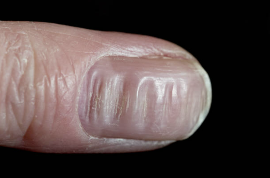 - 철분 결핍 : 손톱을 약하게 만들어 가로줄 발생.