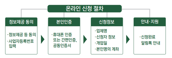 - 주의사항 : 신청 첫 이틀간은 접속자 폭주를 방지하기 위해 사업자등록번호 끝자리 기준으로 홀짝제를 적용합니다.