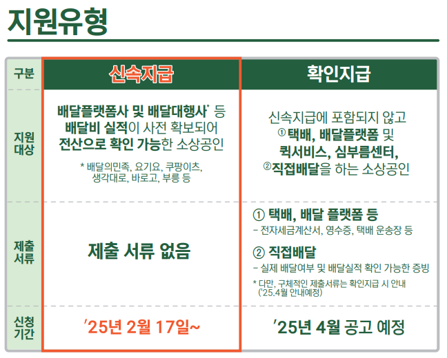 - 신속 지급 대상자: 배달앱 등 6개 플랫폼의 데이터를 활용하여 신속 지급이 가능한 소상공인