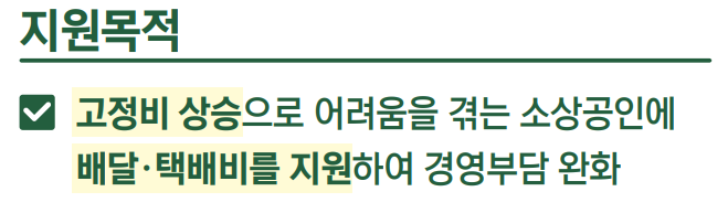 - 신속 지급: 배달 앱이나 배달 대행사 이용자 대상, 배달비 내역이 전산으로 확인되어 간단하게 신청 가능