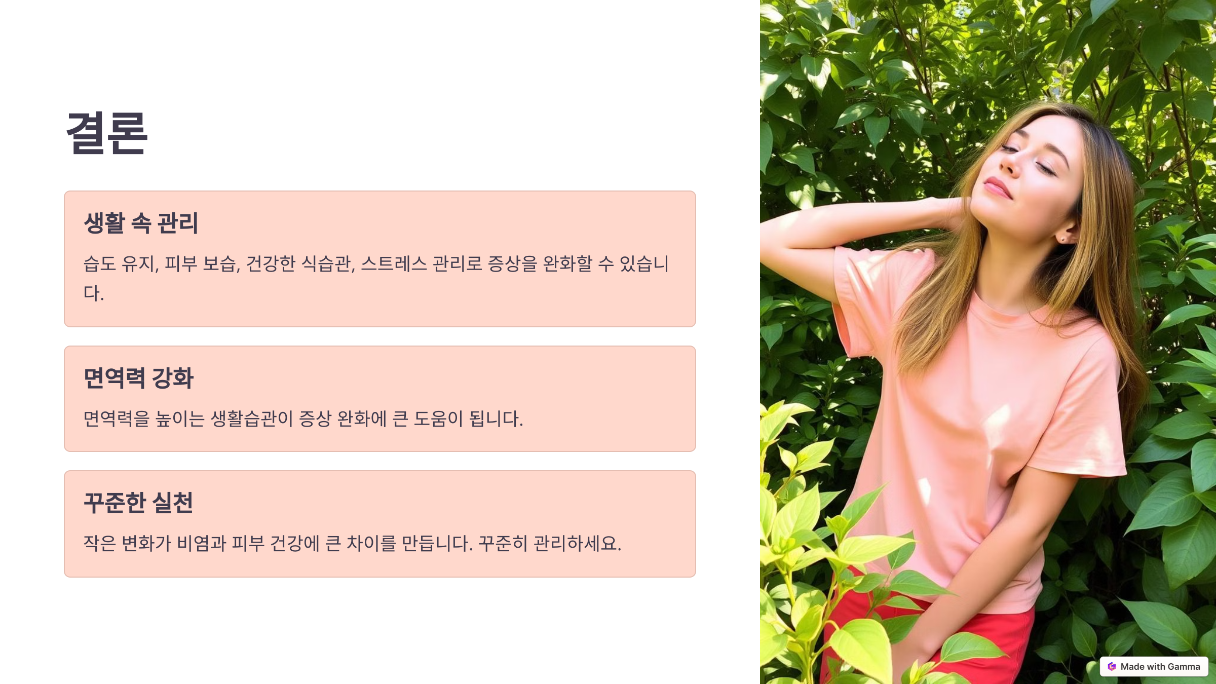 증상 완화와 관리를 위해 아래의 방법들을 실천해 보세요.
